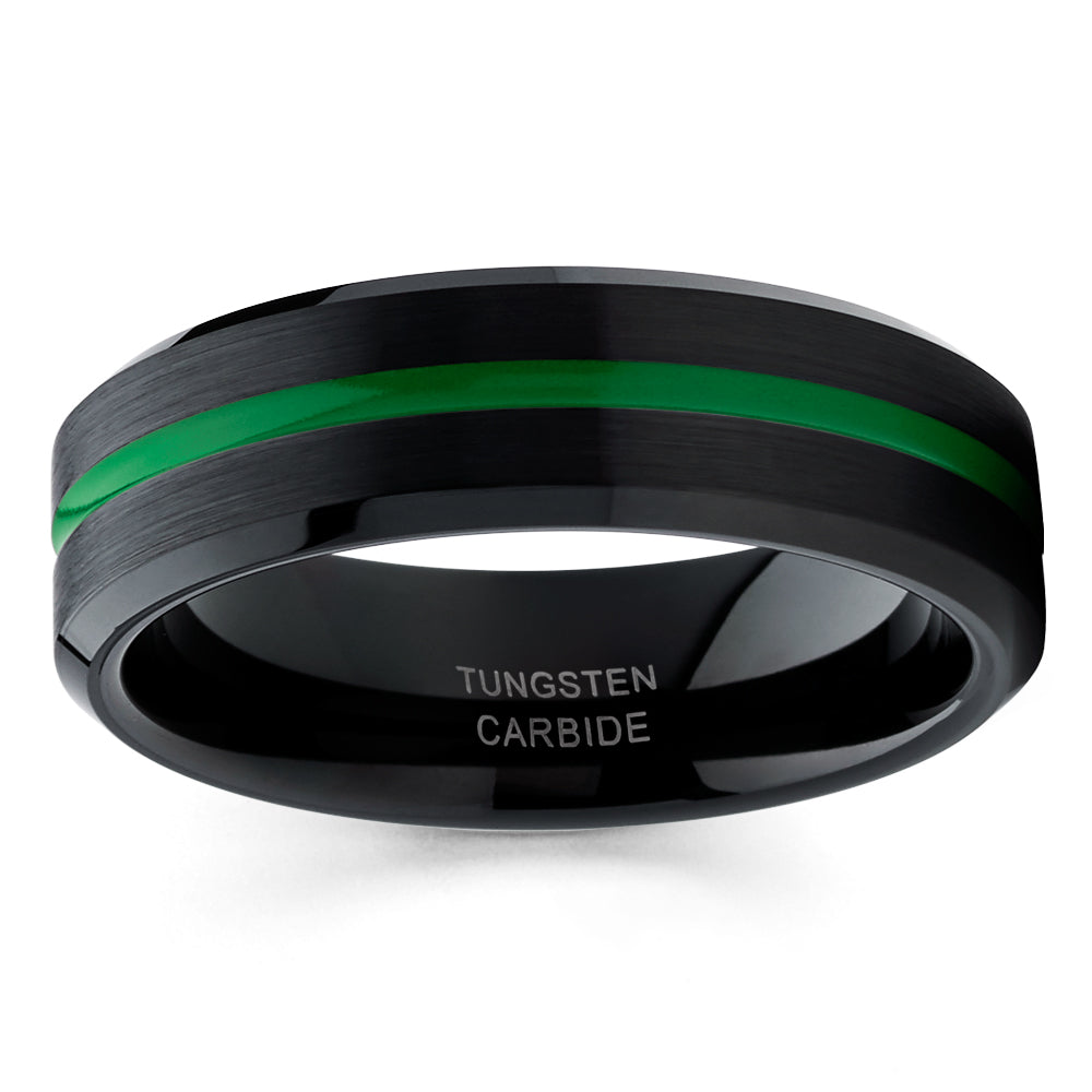 6mm Green Wedding Ring Black Wedding Ring Tungsten Wedding Ring Engagement Ring