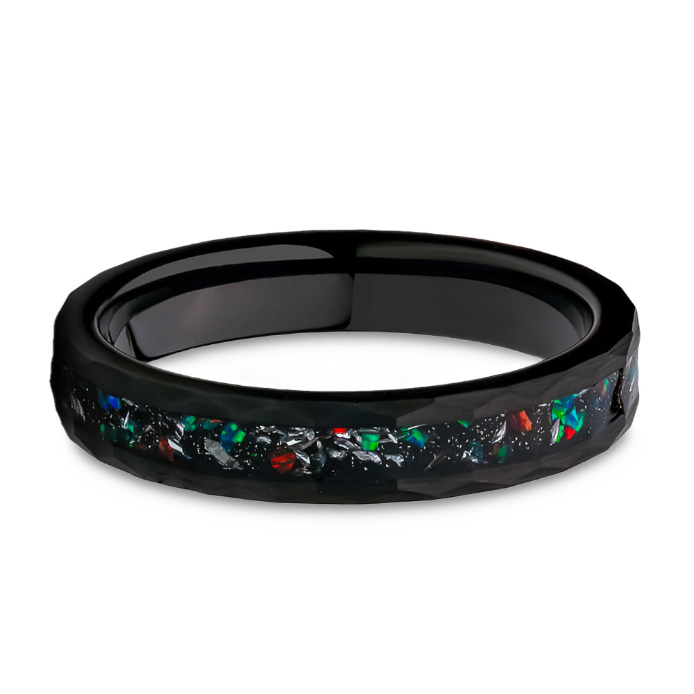 4mm Galaxy Opal Black Tungsten Ring