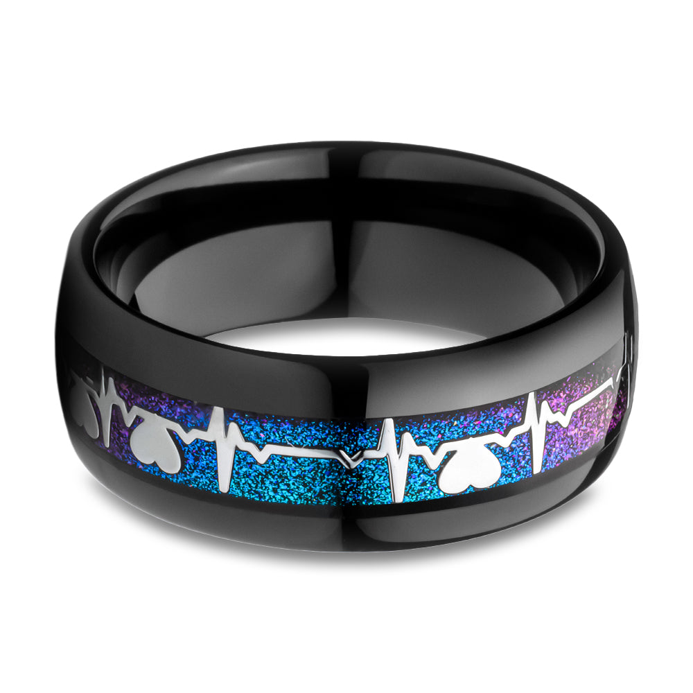 Heartbeat Wedding Ring,8mm Wedding Ring,Tungsten Carbide Ring,Engagement Ring,Black Wedding Ring