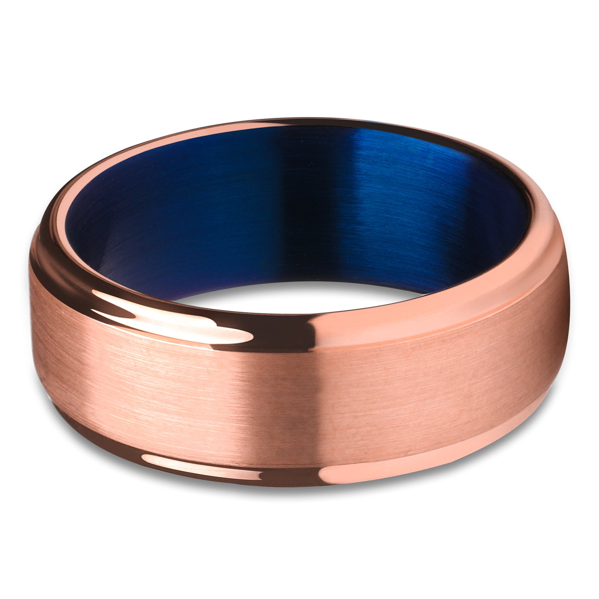 Rose Gold Tungsten Wedding Ring Blue Wedding Ring 8mm
